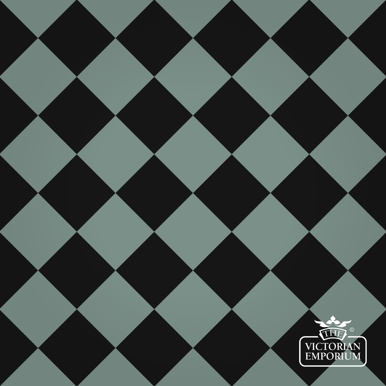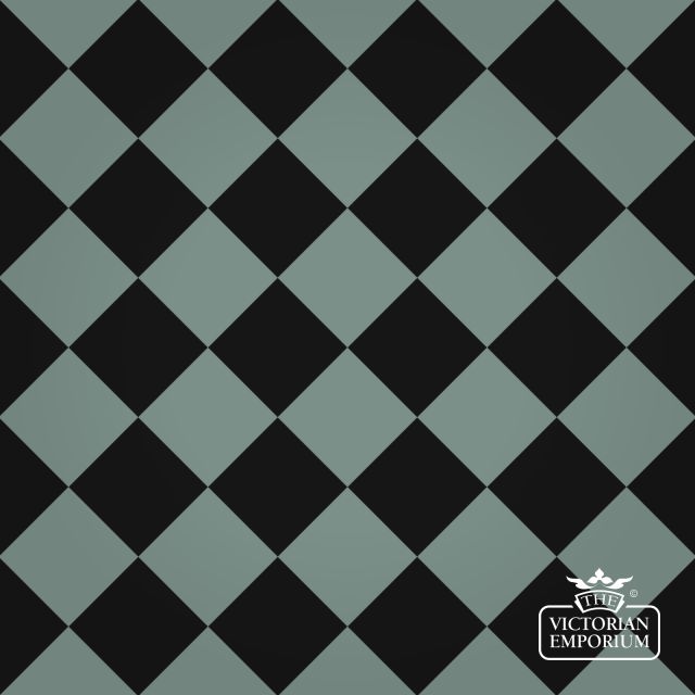 Spanish Green and black floor Victorian Path tiles making up a chequerboard pattern. Can also be turned 45 degrees to make a diamond pattern.