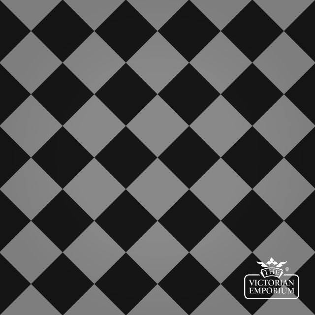 Steel and black floor Victorian Path tiles making up a chequerboard pattern. Can also be turned 45 degrees to make a diamond pattern.