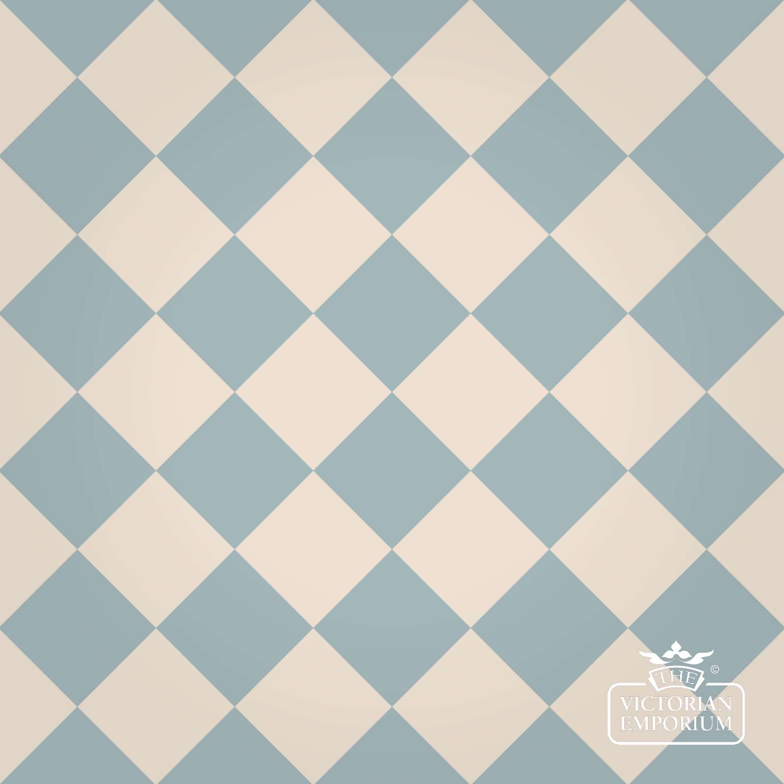 Sky blue and white Victorian Path tiles making up a chequerboard pattern. Can also be turned 45 degrees to make a diamond pattern.