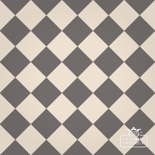 Slate and white Victorian Path tiles making up a chequerboard pattern. Can also be turned 45 degrees to make a diamond pattern.