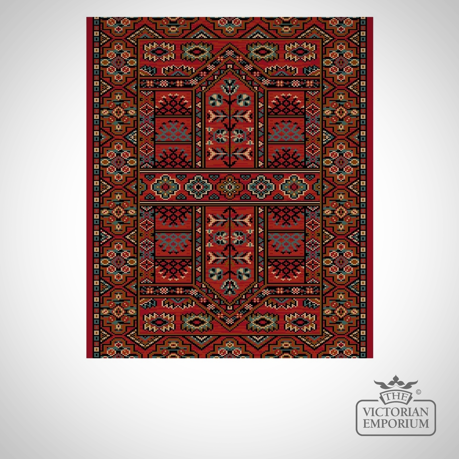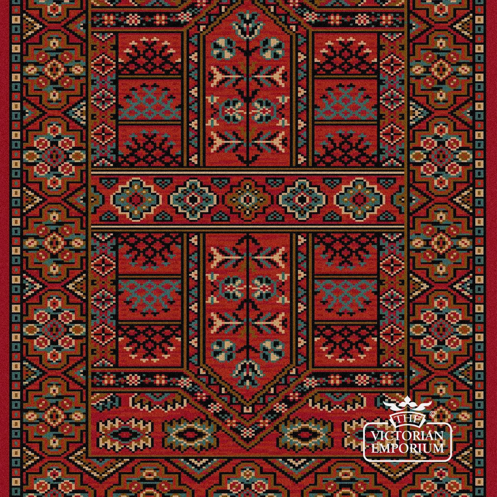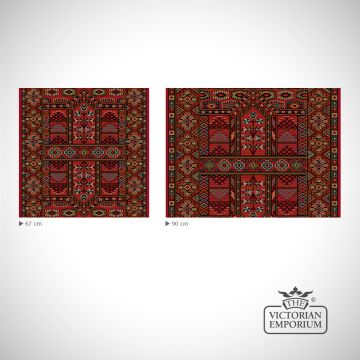 Beautiful Victorian stair runner carpet with a traditional deep red design. Will suit all period staircases. Comes in two widths: 67cm and 90cm
