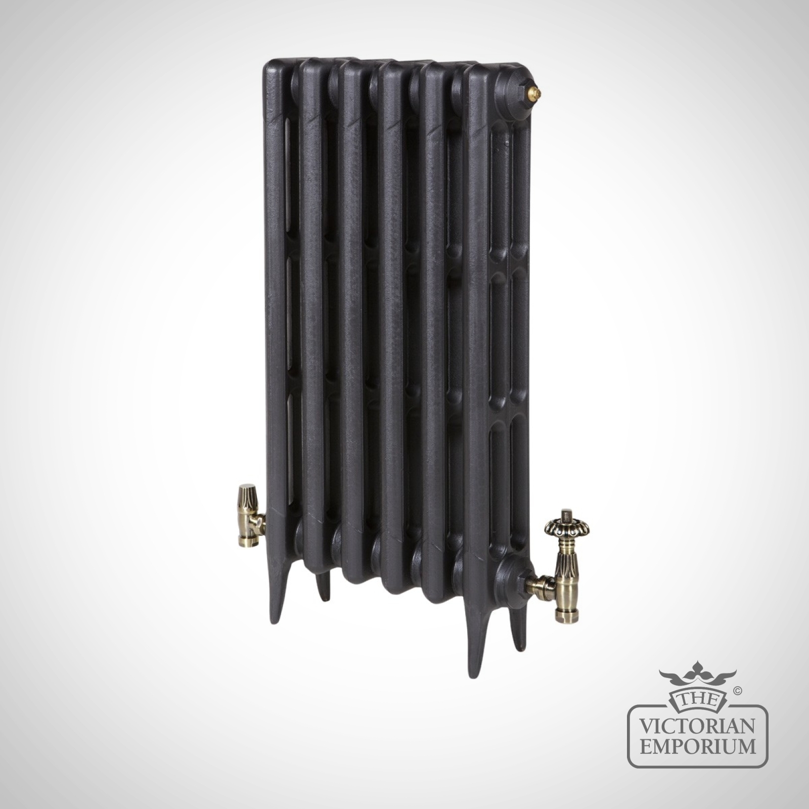 This cast iron radiator was first produced in America in the 1880s. The simple column design of the Victorian gives an authentic feel for the period home.The Victorian cast iron radiator is available in a wide range of heights ranging from 460mm to 813mm. Widths available from 270mm to 1808mm. Each Victorian heating system is supplied complete with plugs, bushes and air vents with a choice of 1/2 inch or 3/4 inch connections. The 725mm slim line is only available with 1/2 inch connections.