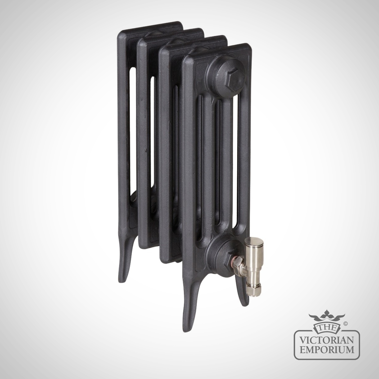 This vintage look radiator comes in a black primer finish and can be painted for an additional cost. Please see related traditional heating products for painting and period radiator valves.