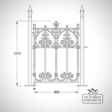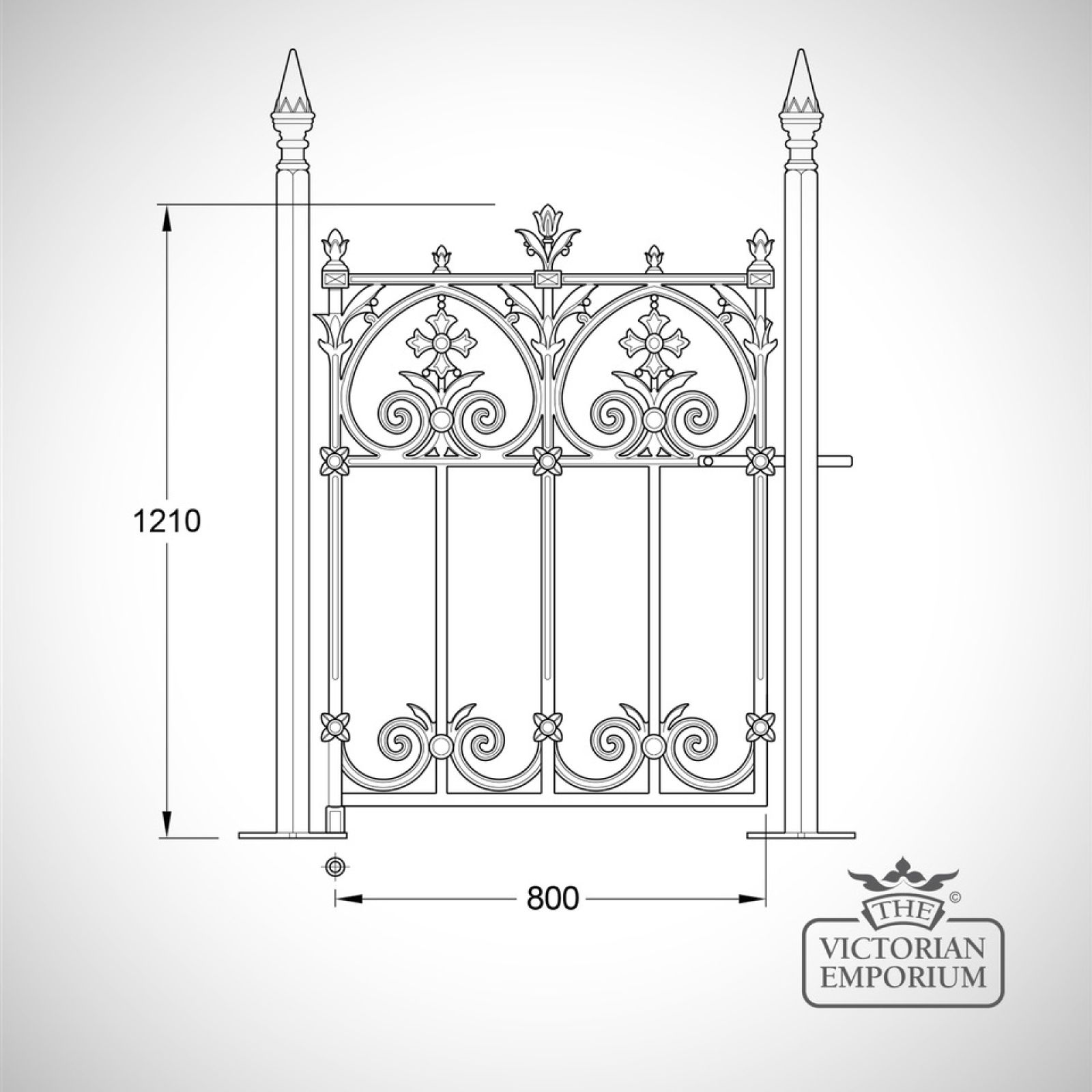 Make your terraced house stand out with this traditional Victorian cast iron pedestrian gate. Unlike modern wrought iron this solid gate will stand the test of time. It's traditional design and materials are perfect for anyone wishing to restore the original look of their home. The space required between gate piers for this gate is 965mm - 1000mm. However, if you don't already have piers for the gate to hang you can use complementary posts. The width of the gate with 2 posts is 1145mm from the furthest edge of the post plate to the next. This gate  comes supplied with all required accessories to hang from gate posts or piers including handle latch, latch receiver, base pivot and hinge.