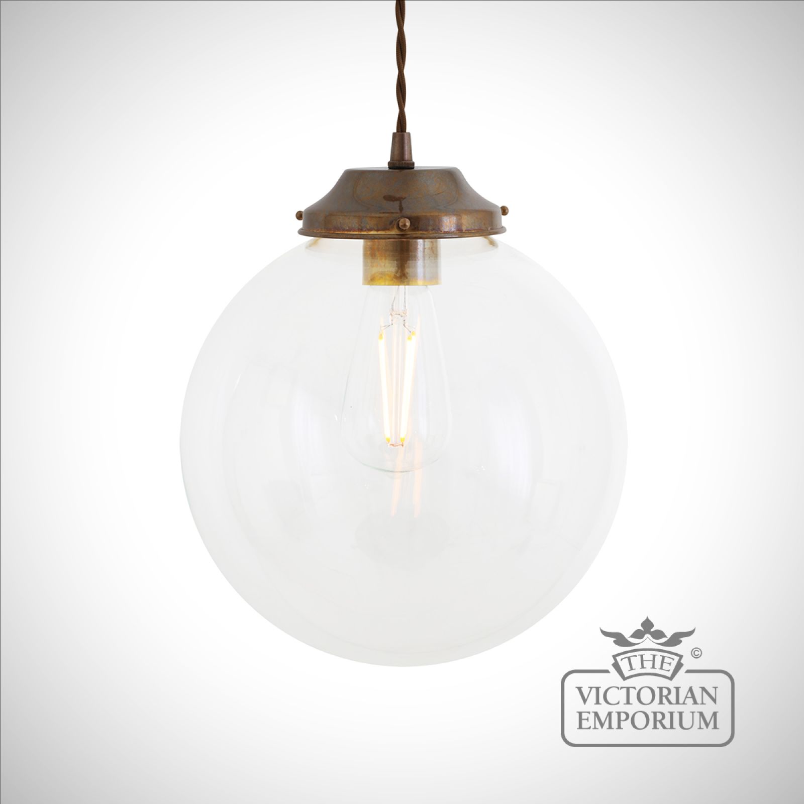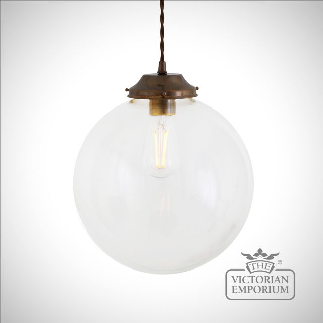 The Virginia clear globe pendant light is a classic traditional pendant with a clean industrial-inspired style. Can be installed individually or together in groups of three or five.
