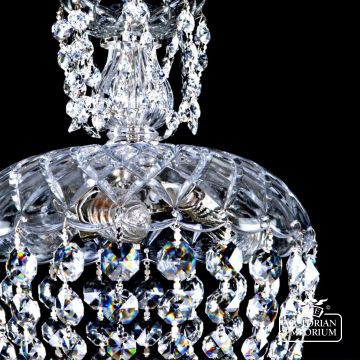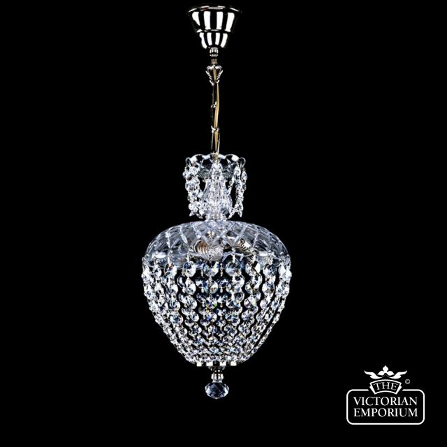 Lovely basket chandelier dressed with 30% PbO bohemian crystal trimmings and suitable for small areas