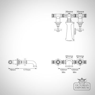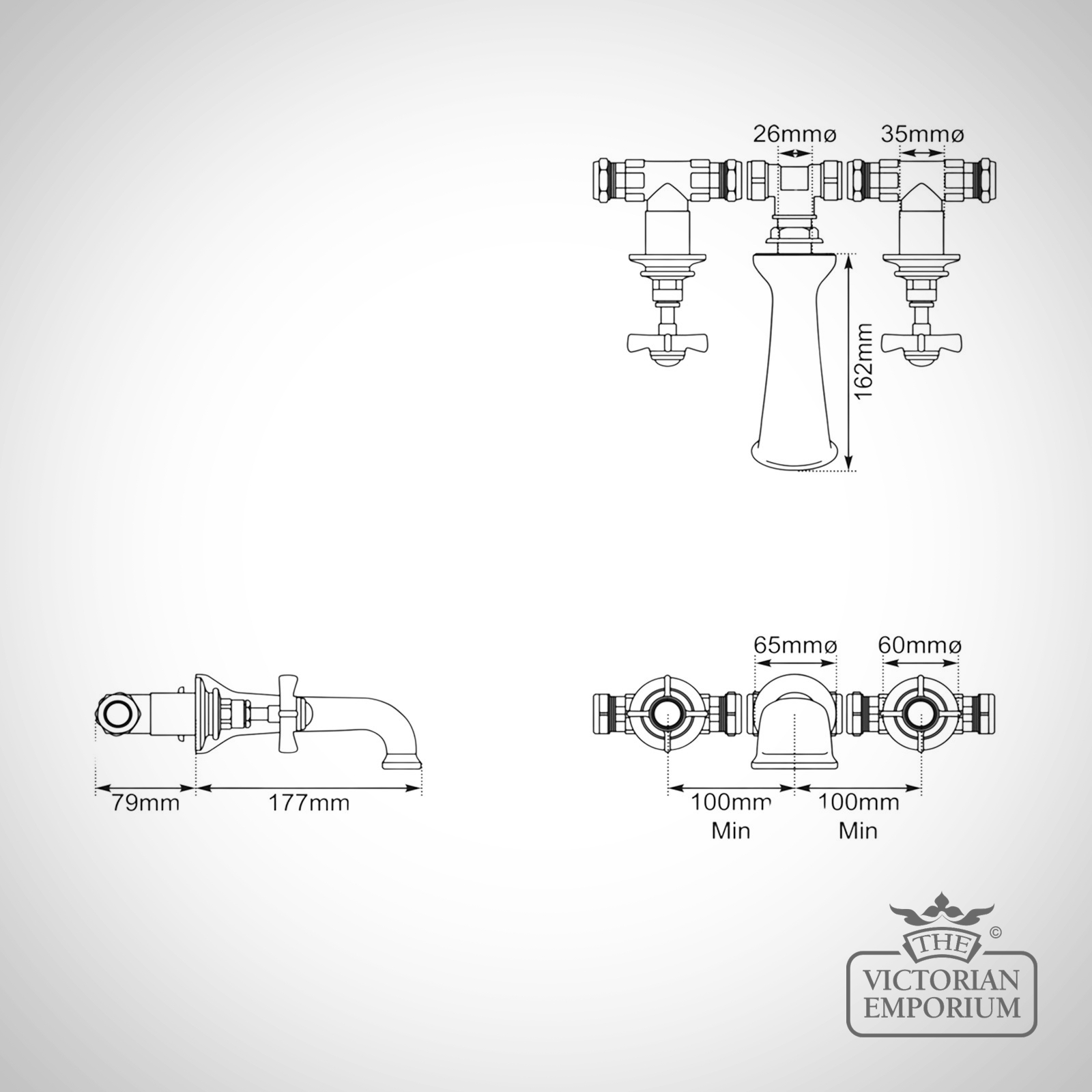 Wall Mounted Three Piece Bath filler - in Chrome, Nickel or Copper