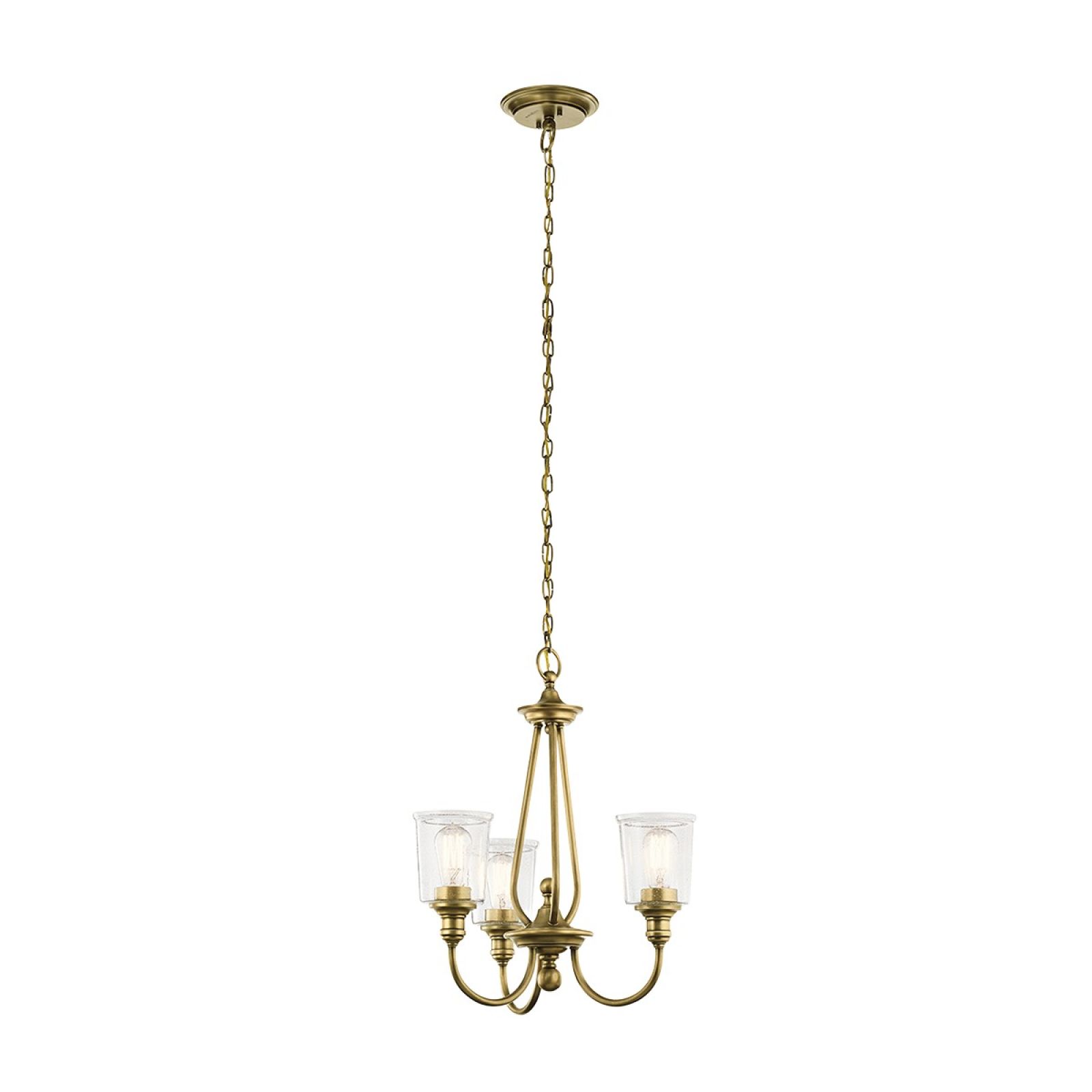 The Waverley small chandelier in brass has the feel of a classic antique but is versatile enough to work with traditional or modern décor, with clear seeded glass.