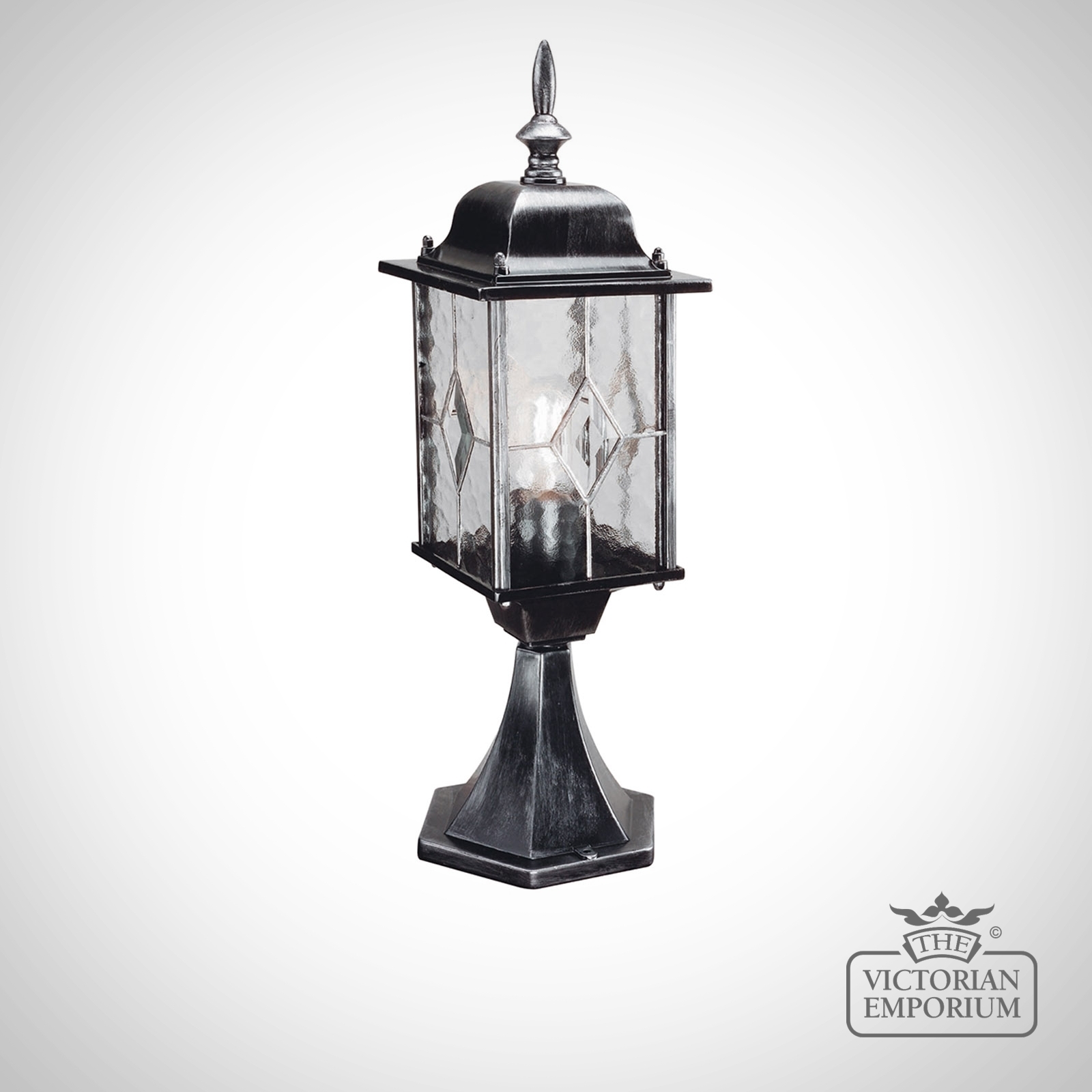 The Wexford is a range of beautiful leaded lanterns in a classic style with larger proportions in black and silver finish. All have a 3 year anti corrosion guarantee