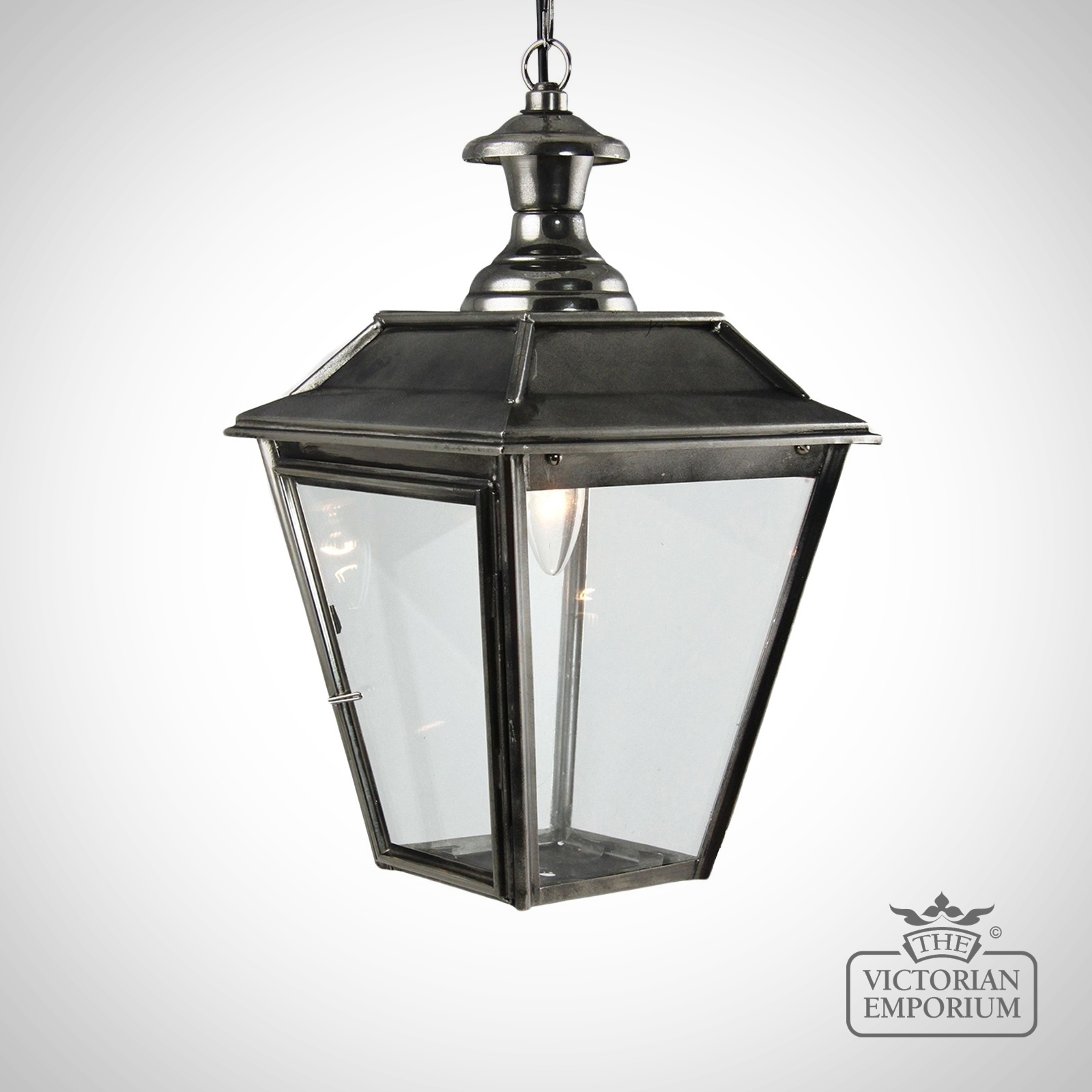 This classic solid brass vintage style lantern is available in a nickel black finish. Made from solid brass and glass