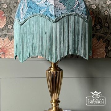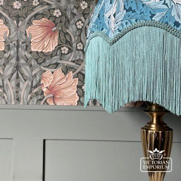 This beautiful Victorian style lamp shade has unlimited bespoke options. Please email us if you’d like to change the colour of fringing or even the fabric and we can provide you with a bespoke quotation.