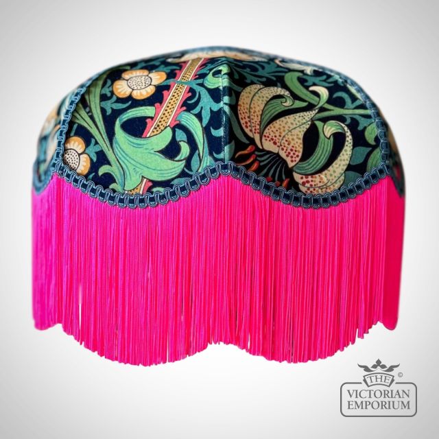 This beautiful Victorian style lamp shade has unlimited bespoke options. Please email us if you’d like to change the colour of fringing or even the fabric and we can provide you with a bespoke quotation.