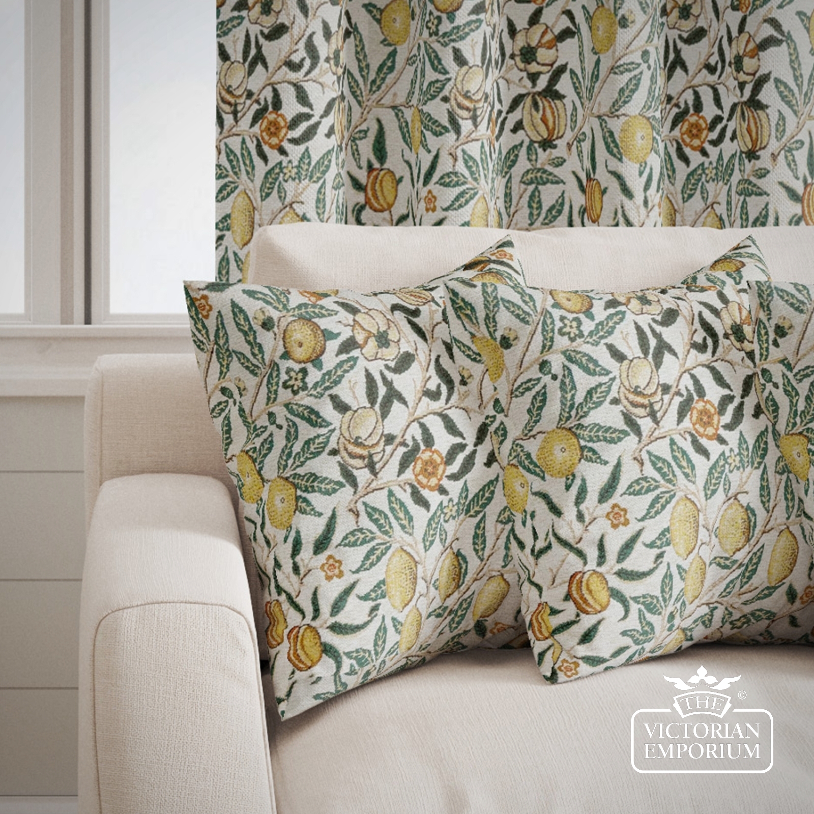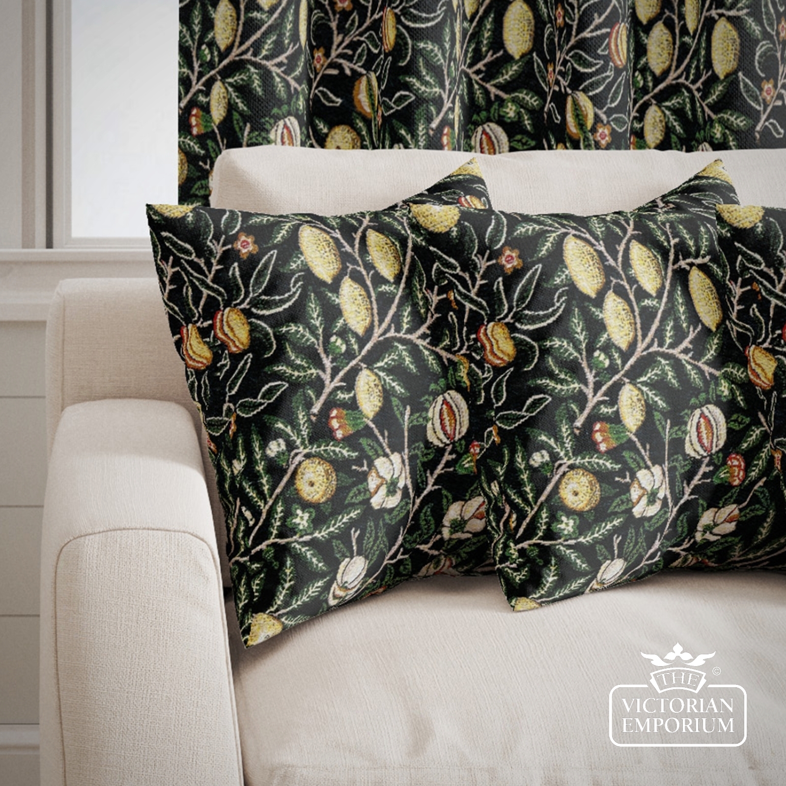 A really beautiful fabric from a William Morris design featuring pomegranite plants in a choice of 3 colour ways