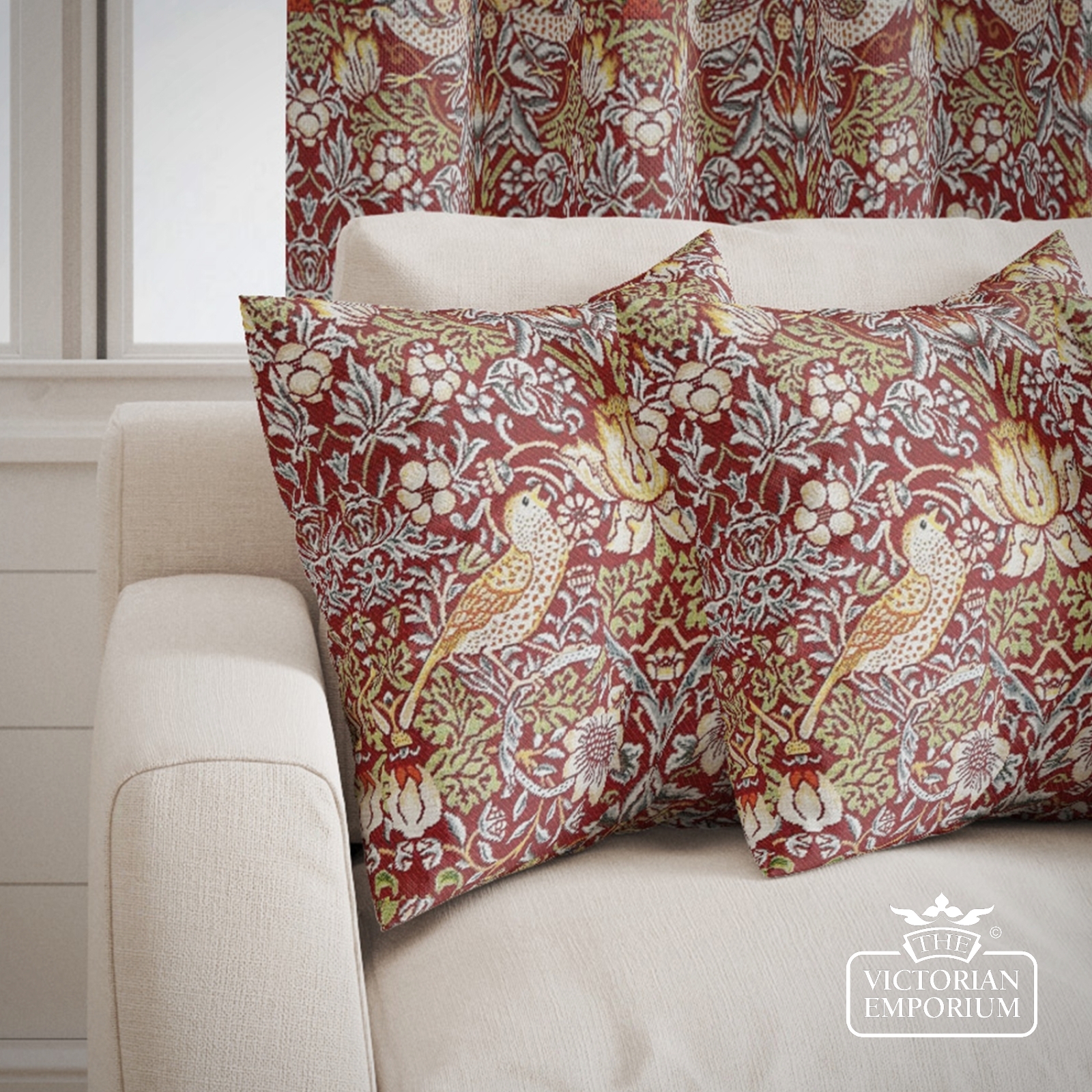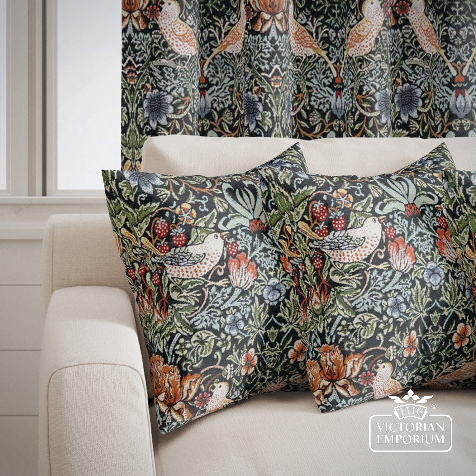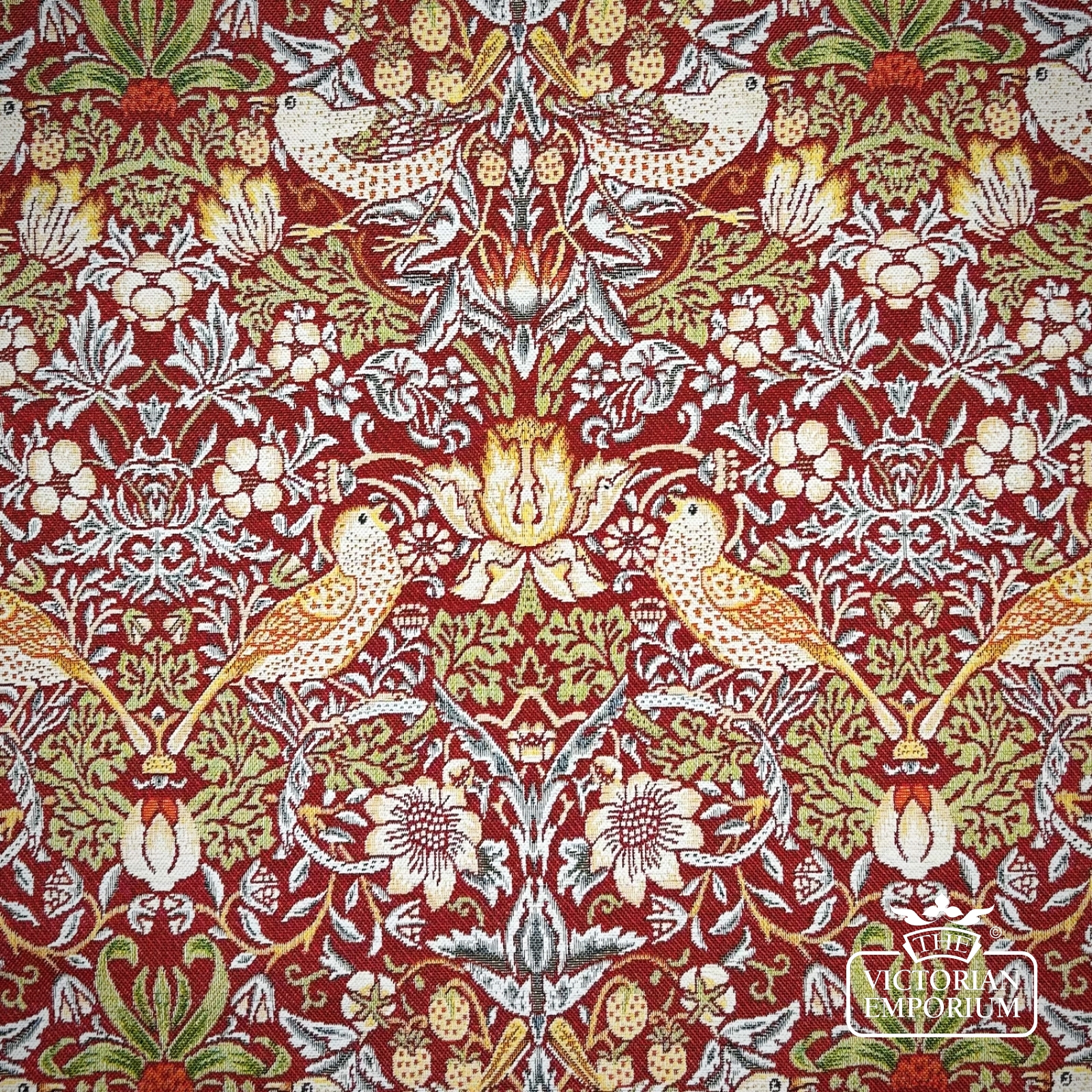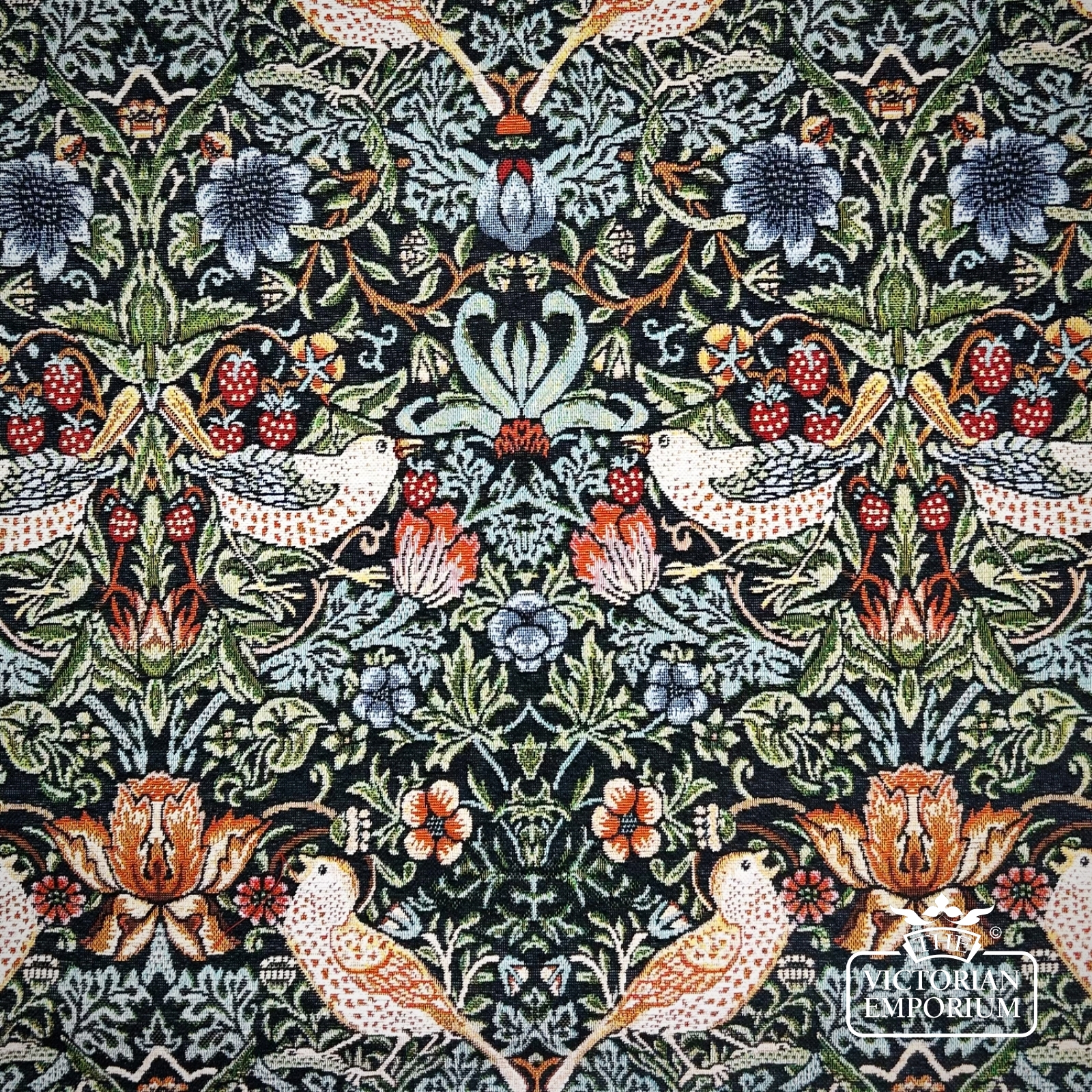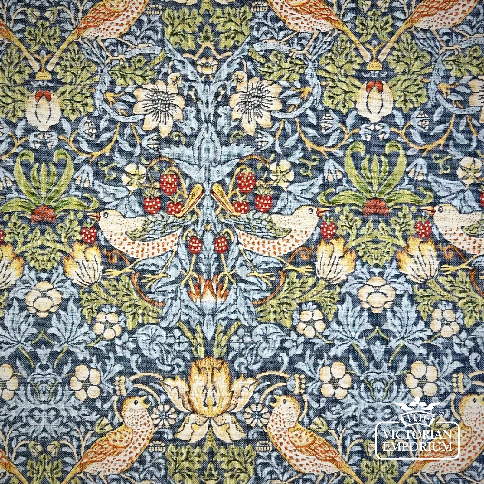One of the most famous of the fabric designs by William Morris featuring strawberries and birds in a choice of 3 colour ways