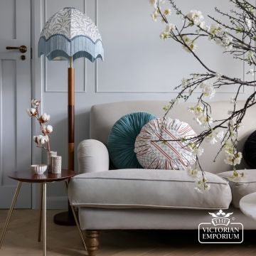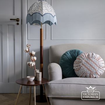 This beautiful Victorian style lamp shade has unlimited bespoke options. Please email us if you’d like to change the colour of fringing or even the fabric and we can provide you with a bespoke quotation.