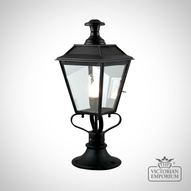 This is a classic pedestal lantern made from solid brass in an antique bronze finish or in black. Made from solid brass and glass