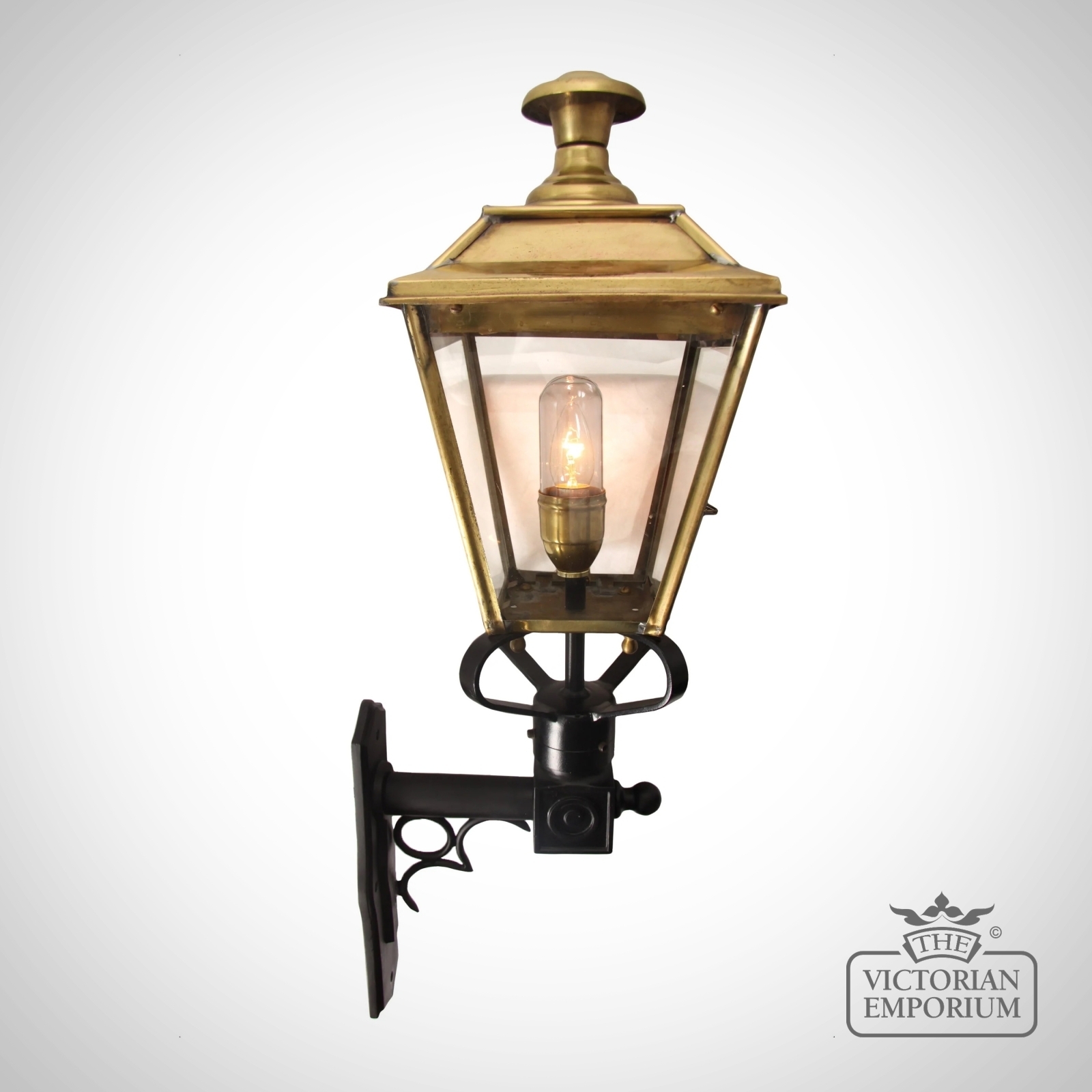 This is a classic outdoor wall lantern made from solid brass available in an black, distressed brass and antique bronze finish.