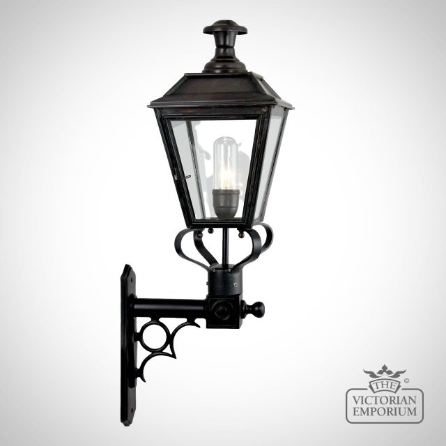 This is a classic outdoor wall lantern made from solid brass available in an black, distressed brass and antique bronze finish.