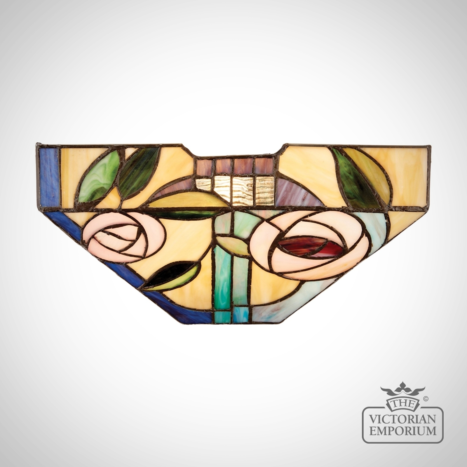 The Willow wall light incorporates the famous Mackintosh style rose, with subtle pretty colours, complemented by a dark bronze fitting