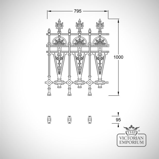 Winchester half height railing panel with feet to go on a low wall