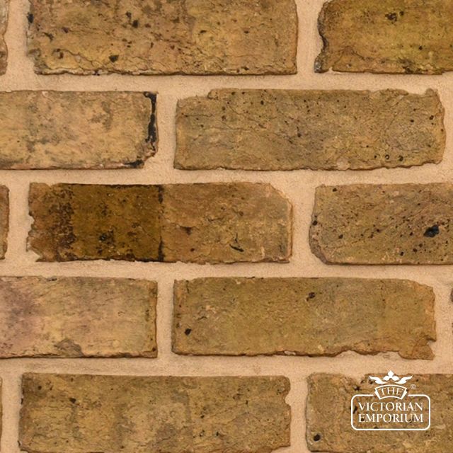 London yellow bricks with a weathered finish and authentic coal spotting, replicating the soot-engrained brickwork iconically seen on London buildings