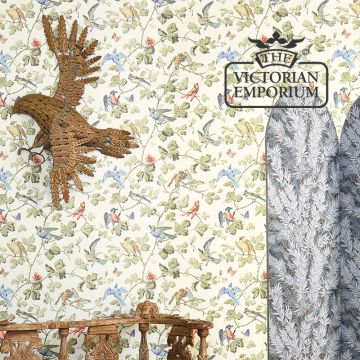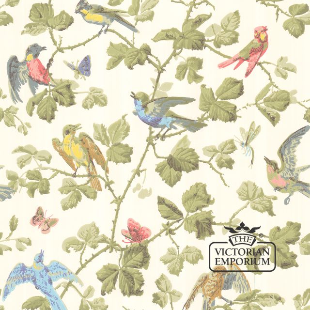 This wallpaper is available in classic duck egg, soft blue, cream grounds, indigo blue ground and softer prettier birds on a delicate ivory. This a classic and much loved design.