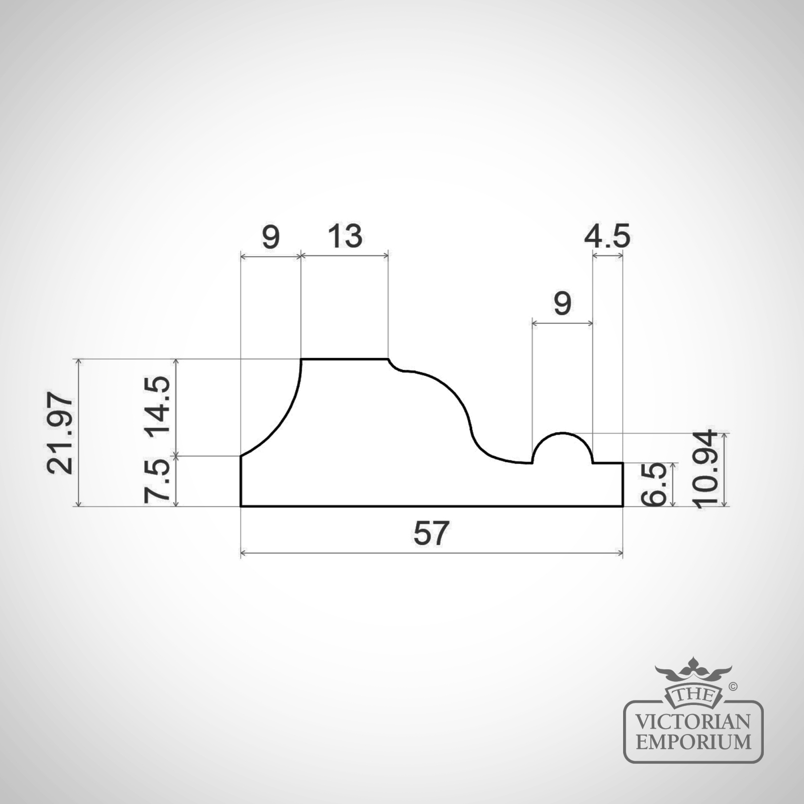 Dado with scoop profile. This dado rail is ideal for a victorian hallway or where an original style is required. Redwood or oak available.