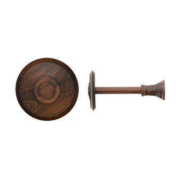 Discus shaped wooden curtain holdback complete with stem, wall plate and fixings.