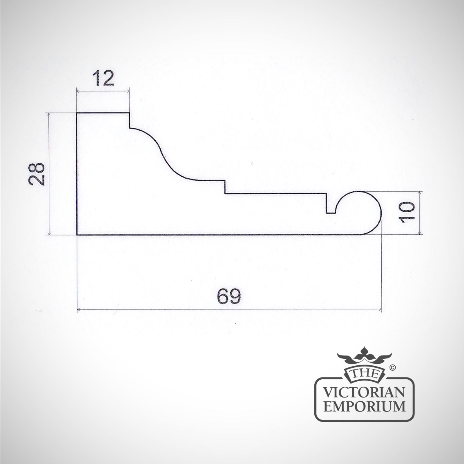 This medium sized architrave can be adapted for door or window surounds. Perfect for Victorian and Edwardian era interiors. Measuring 69mm x 28mm in Redwood (pine) and Oak (random lengths per m).