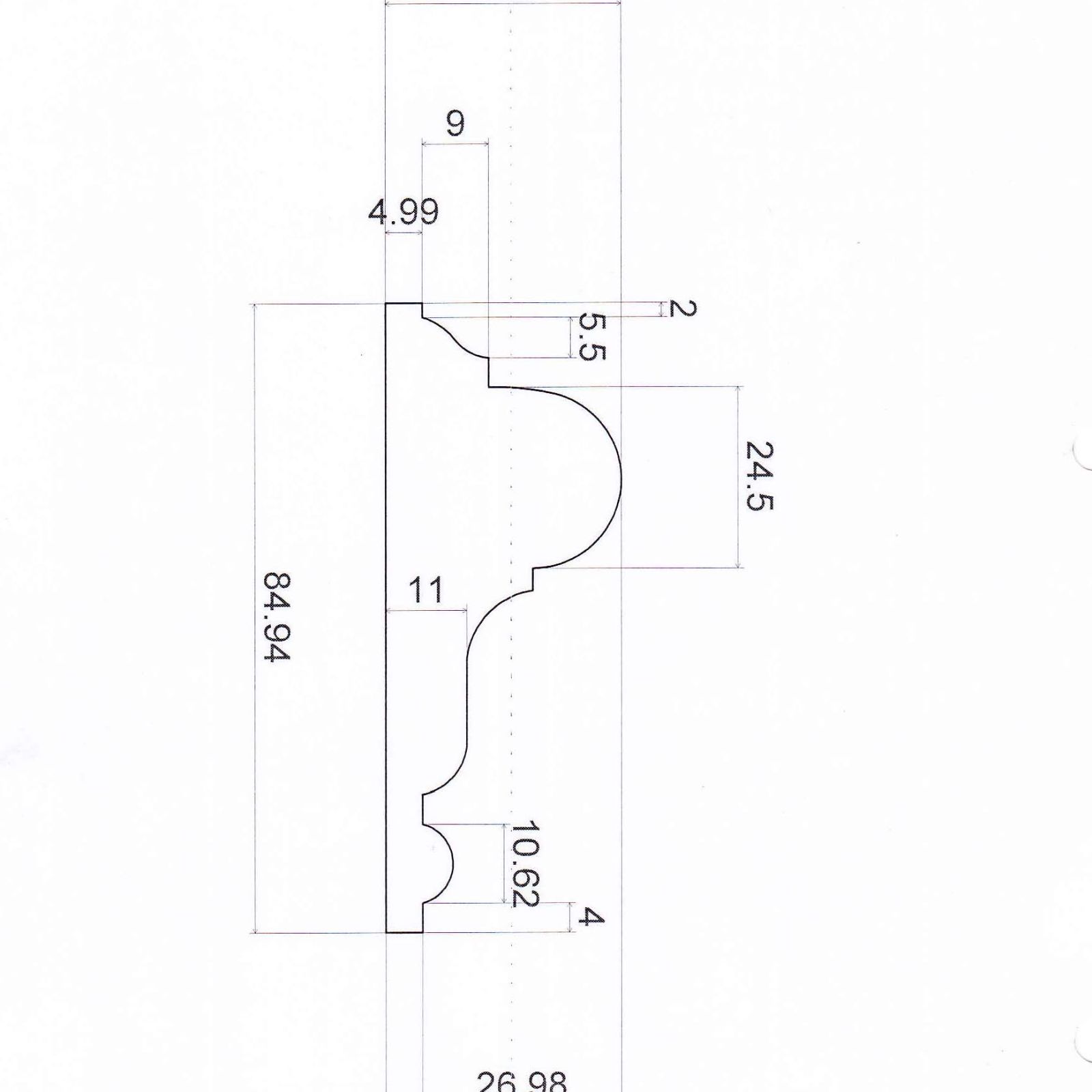 Wooden dado rail 85x32mm random length (per m)