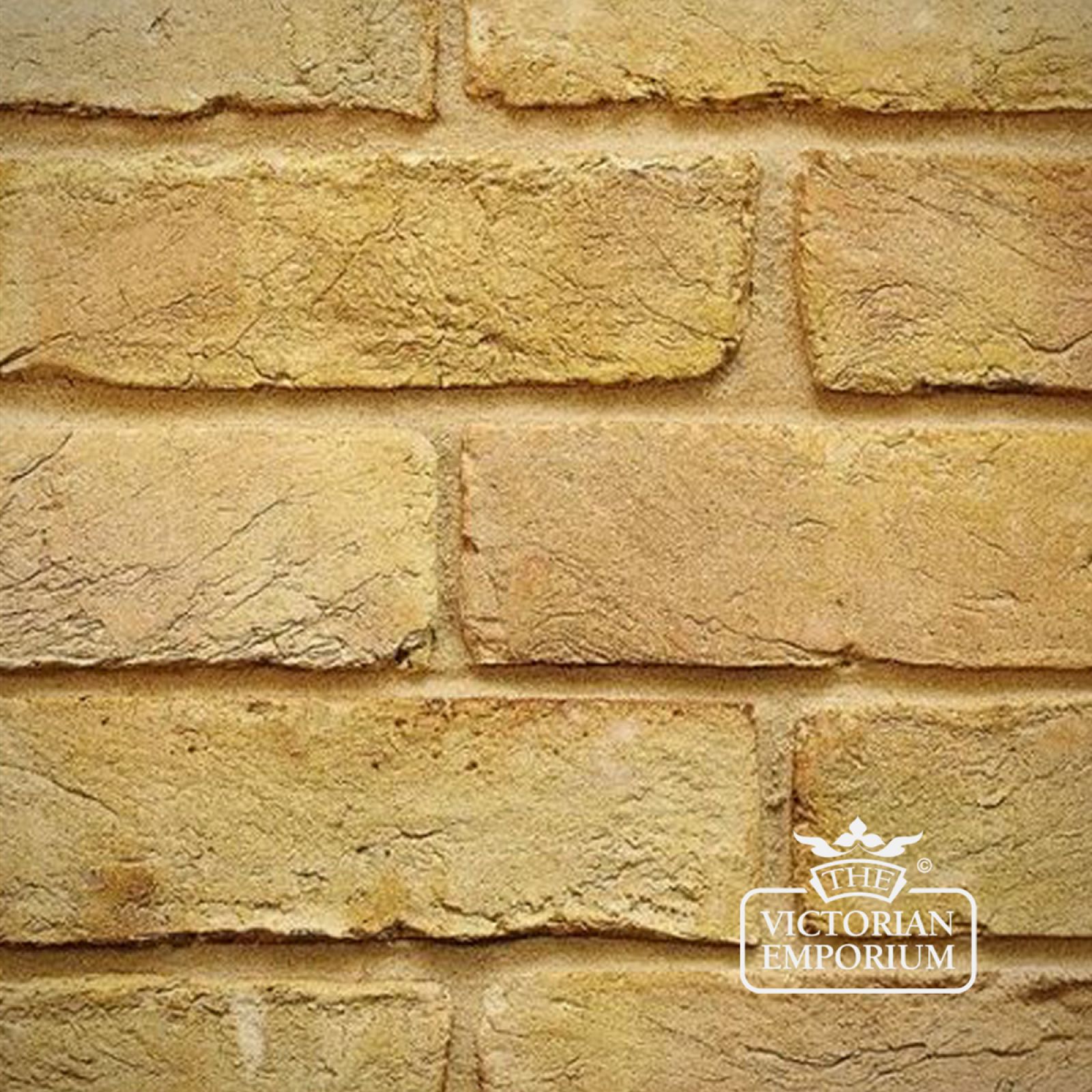 A high quality handmade yellow brick with some overburns and commonly known as a ‘London Yellow Stock’; this brick is manufactured identically to the reclaimed handmade yellow stock bricks commonly found in London and the surrounding counties.. The bricks are supplied with approximately 5% of the faces in black and white, which are reversible so they can be laid in the desired blend.. . Available in imperial and metric sizes