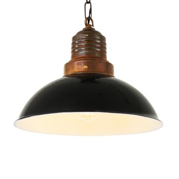 The Ypres is a striking industrial pendant light, perfect for a kitchen, restaurant or pub with a curved aluminium shade in black, racing green or bronze and 30cm in diameter.