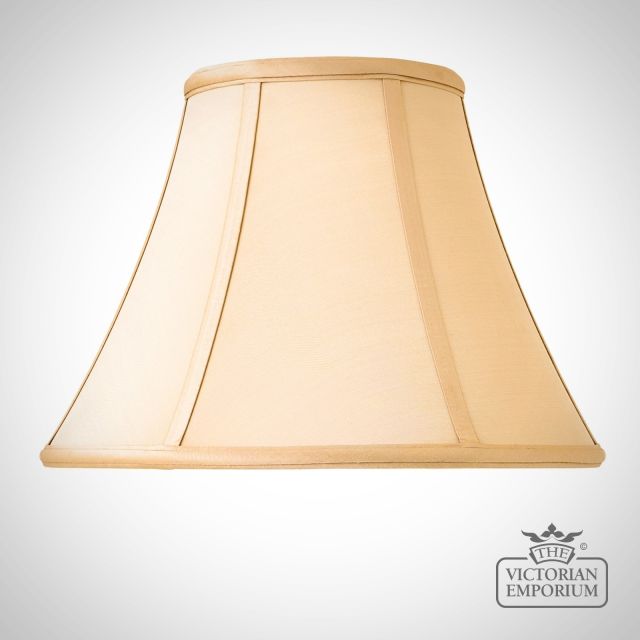 A tapered cylindrical shade in a oyster or honey silk fabric. Available in a choice of sizes